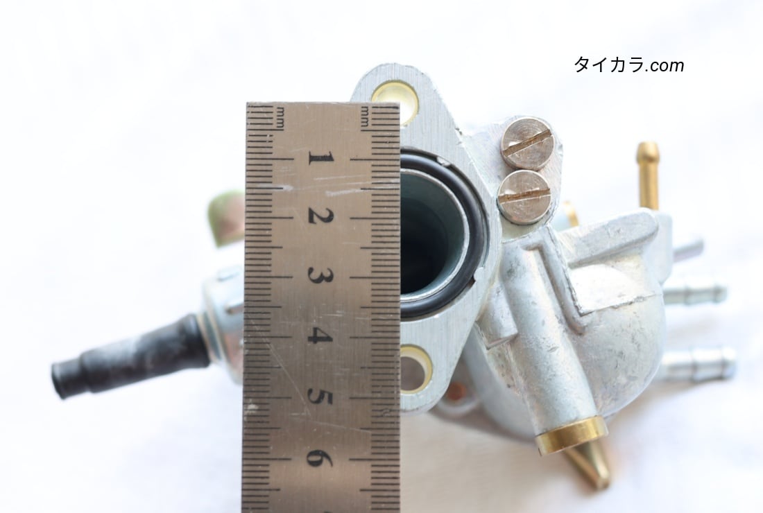 C100用キャブレターは、取り付け台座のネジ穴ピッチは、38mmになり、キャブレターの穴あけ加工が必要になります。